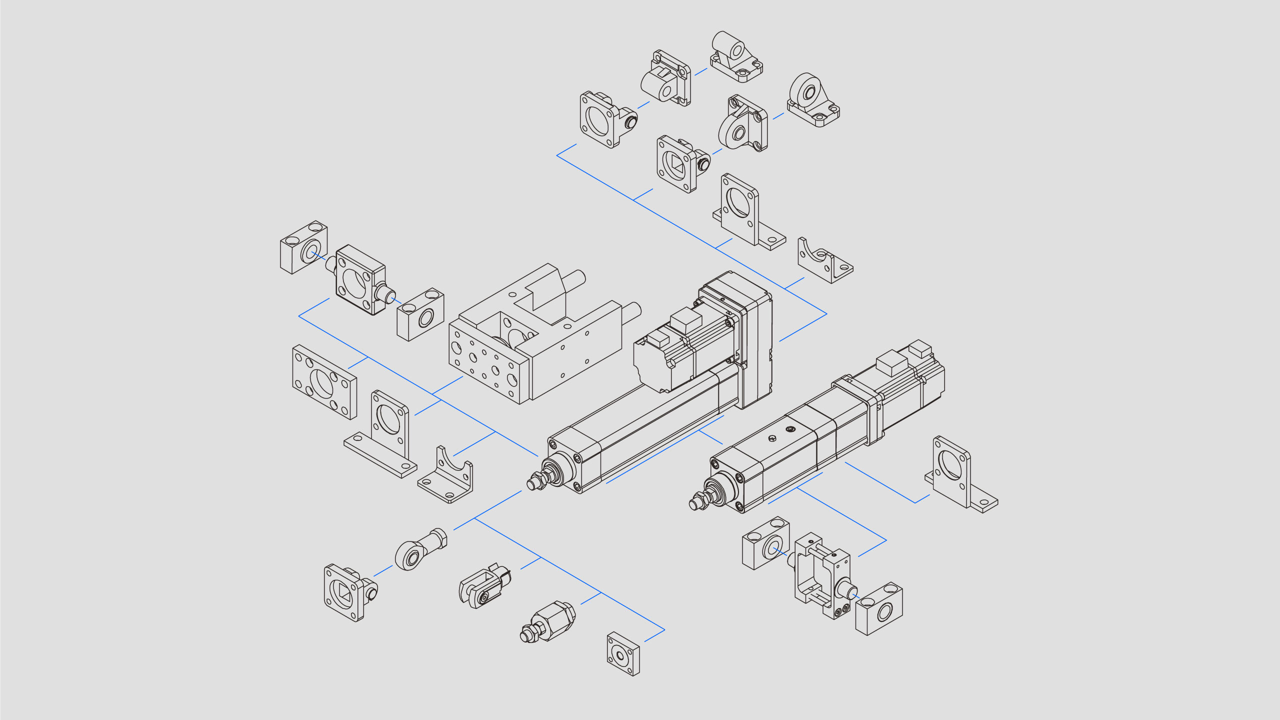 UNIMOTION PNCE 电动缸提供一系列附件, 旨在优化性能并确保与自动化系统无缝集成. 这些配件包括: